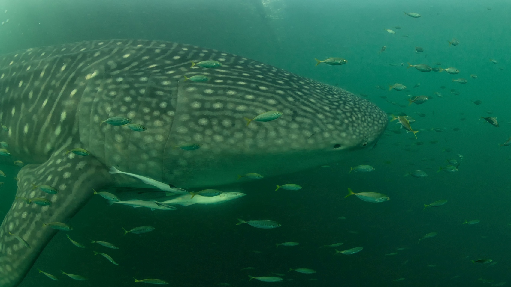 oft Walhaie und Delfine, um ihren Anteil an den Fischen und Garnelen zu fangen. Walhaie sind wohl das ganze Jahr über in der